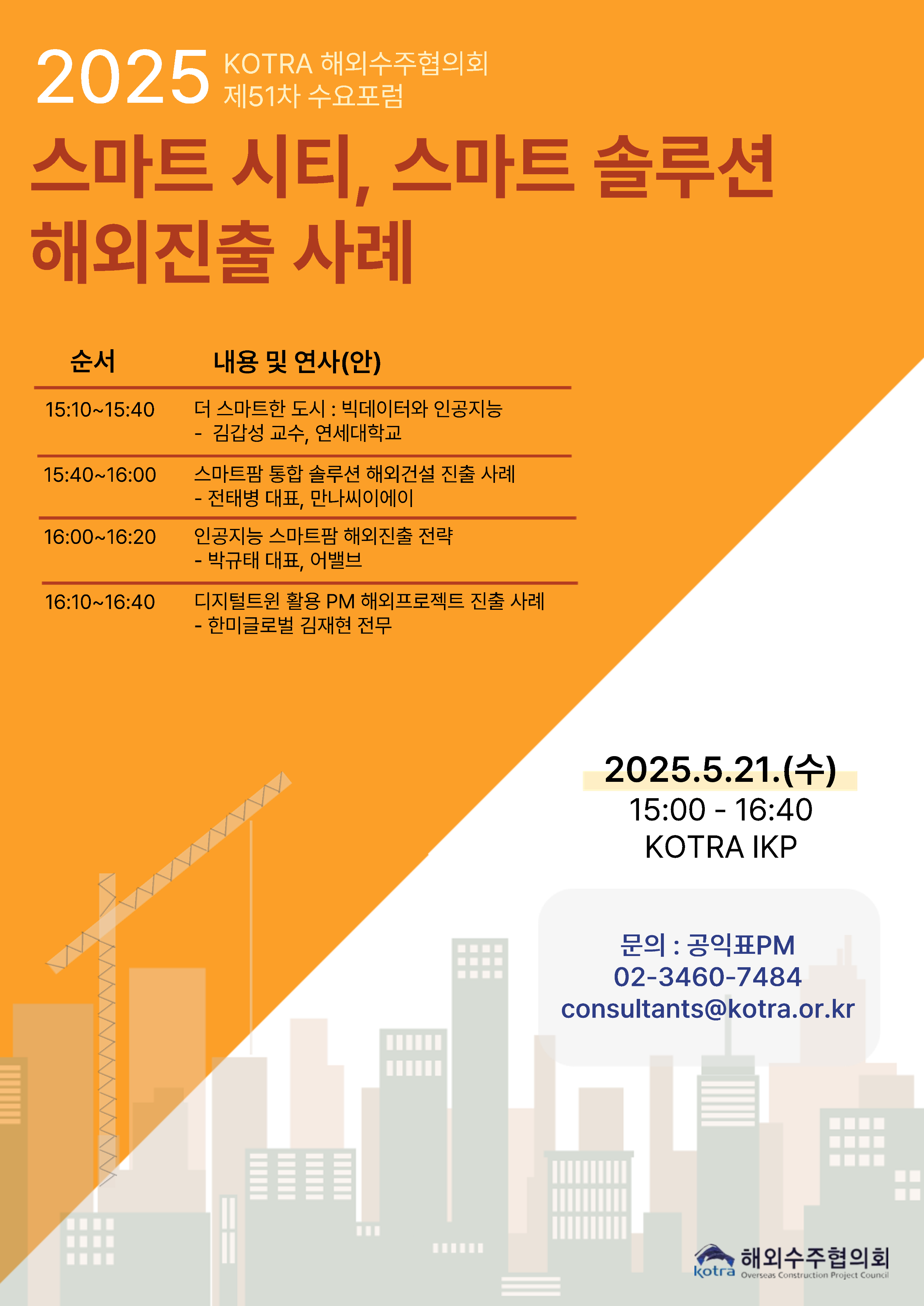 [마감][2025 KOTRA 해외수주협의회 제51차 수요포럼] 스마트 시티, 스마트 솔루션 해외진출 사례 포럼 개최 안내