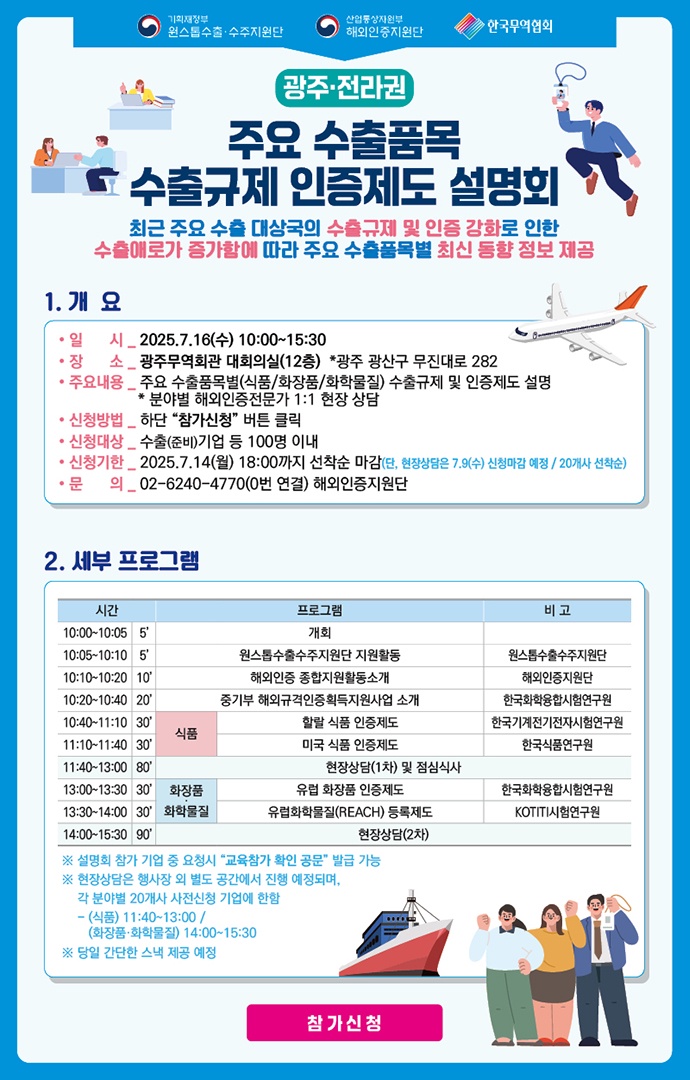 [마감][기획재정부 원스톱 수출수주지원단](광주•전라권) 주요 수출품목 수출규제 인증제도 설명회 안내(7.16)