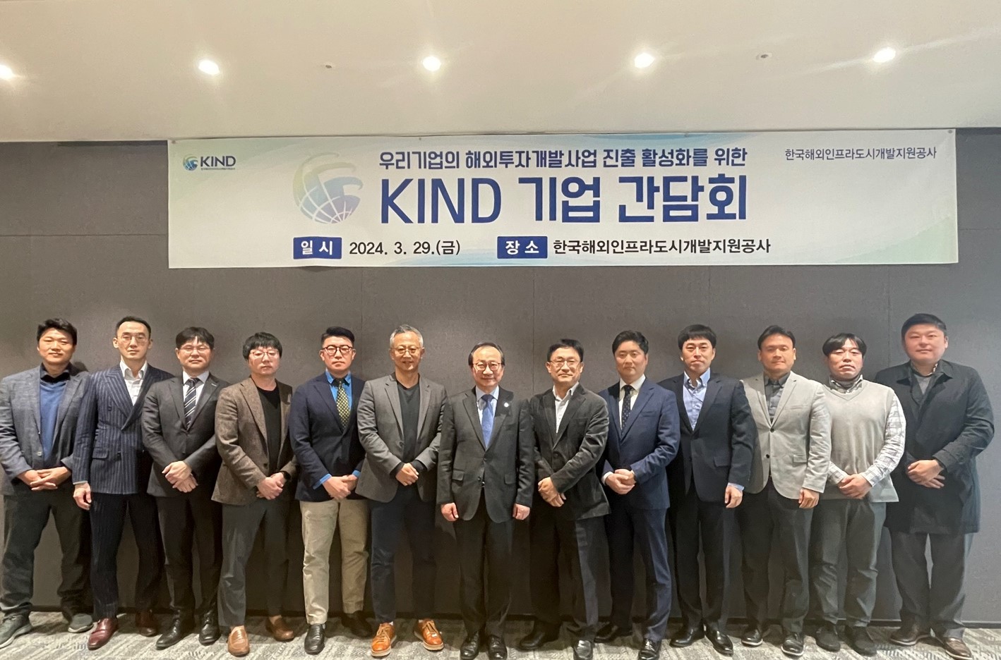 한국해외인프라도시개발지원공사(사장 이강훈, 이하 KIND)는 3월 29일 건설․엔지니어링 기업 관계자들과 해외 투자개발형 사업 활성화 방안 마련을 위한 「기업 간담회」를 개최하였다.