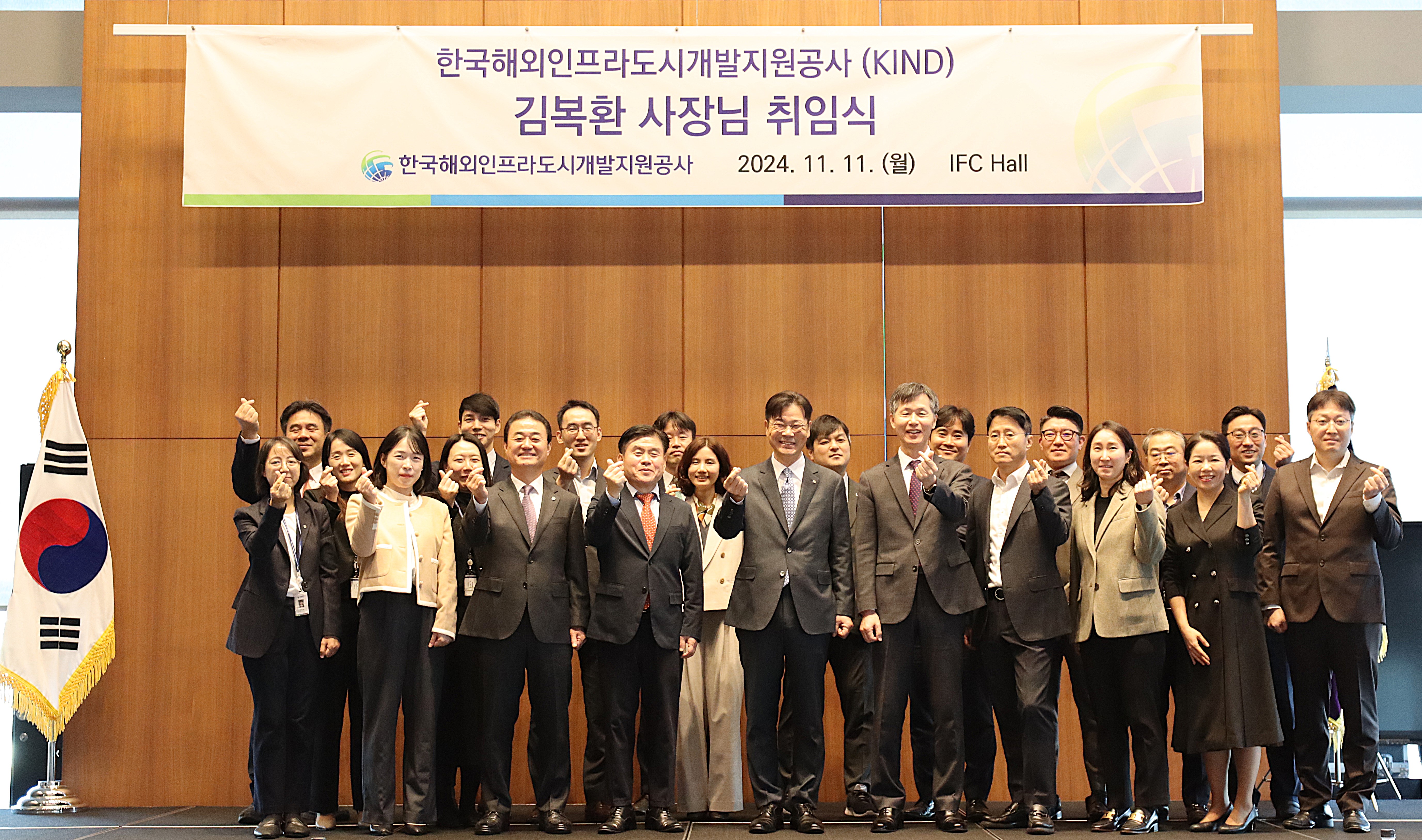 한국해외인프라도시개발지원공사(이하 KIND, 사장 김복환) 김복환제3대 신임 사장이 11일 공식 취임했다. 김복환 신임 사장은 이날 오후 열린 취임식을 통해 직원들과 첫 만남을 가졌다.